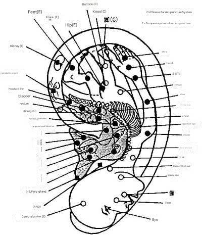 - In 1957, the French doctor Paul Nogier published "Treatise of Auriculotherapy," claiming to have discovered a smaller acupuncture system on each ear, known as the "micro-acupuncture system," and pointed out that the connections of these acupuncture points closely resemble the anatomical diagram of a fetus in a head-down position.
