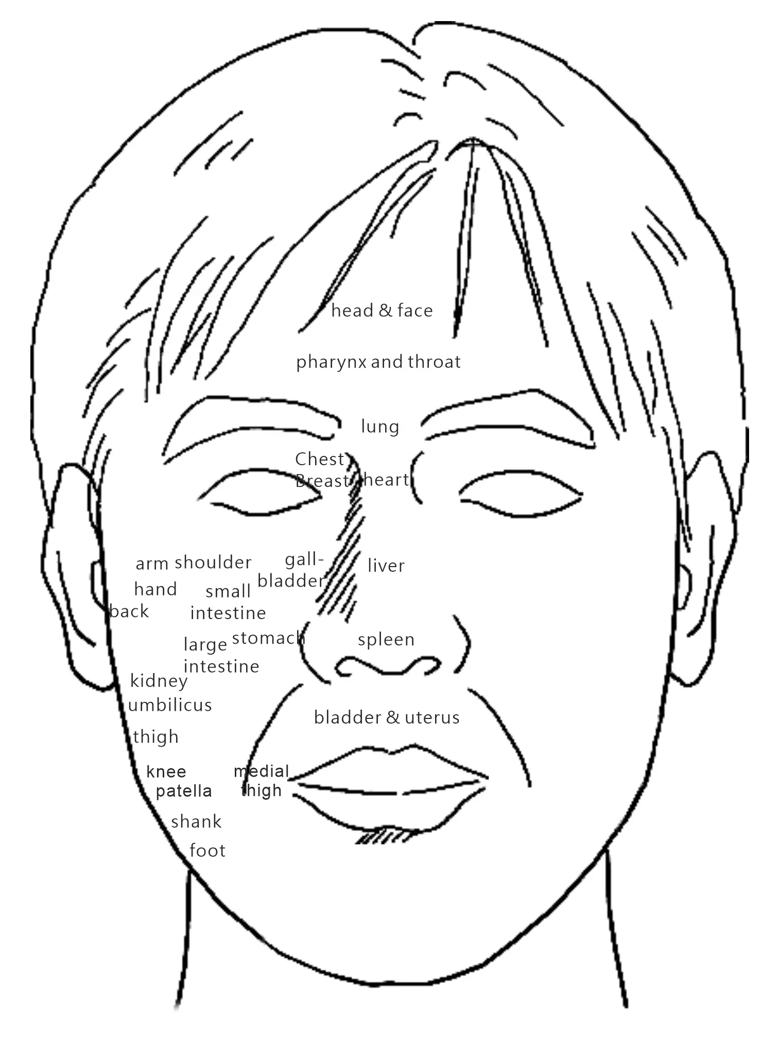 The pulse diagnosis in TCM (Figure 3) involves the physician using their fingers to sense the systemic functional information revealed by the pulsation of the patient's radial artery holographic unit (see the section "What is Pulse Diagnosis Checking For?"). The observation of the face (Figure 4) and the tongue (Figure 5) in diagnosis also involves observing the systemic information revealed by the entire face and tongue holographic units, respectively.