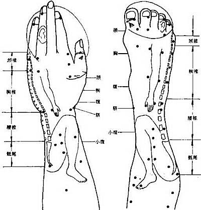 In addition to serving as diagnostic units by reflecting the information of the entire body, holographic units can often also be therapeutic units. For example, the second metacarpal bone discovered by Zhang Ying-qing corresponds to the entire human body. By pressing various points on the second metacarpal bone with fingertips, when a particularly sore point is found, it indicates a disorder in the corresponding organ. Acupuncture at that point can then treat and regulate the corresponding organ. Similarly, the auricle also corresponds to the entire human body. Local darkening, scaling, or varicose veins on the auricle reflect discomfort in the corresponding organ. Treatment can involve massage on that local area, auricular acupuncture, or applying Cowherb Seed and periodically stimulating them through massage, thereby alleviating discomfort in the affected area.