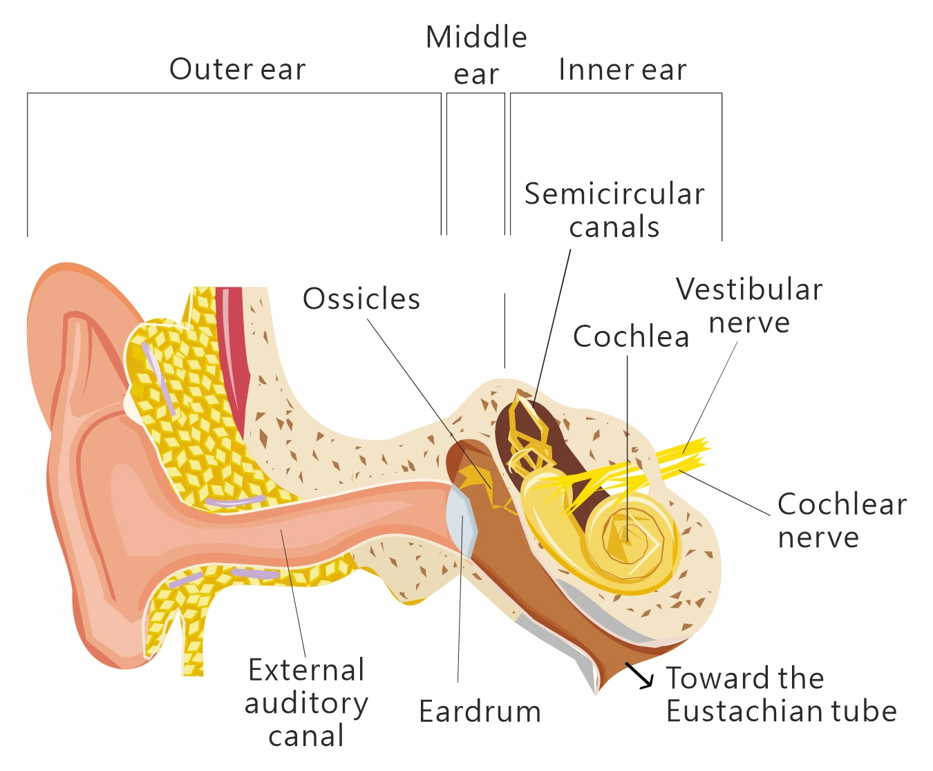 - Trauma or bacterial infection of the external ear canal, damaging the inner ear.